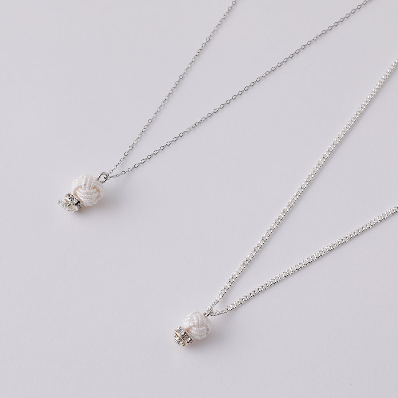 首もとで静かに主張してくれる玉結びはシンプルだからこそ、