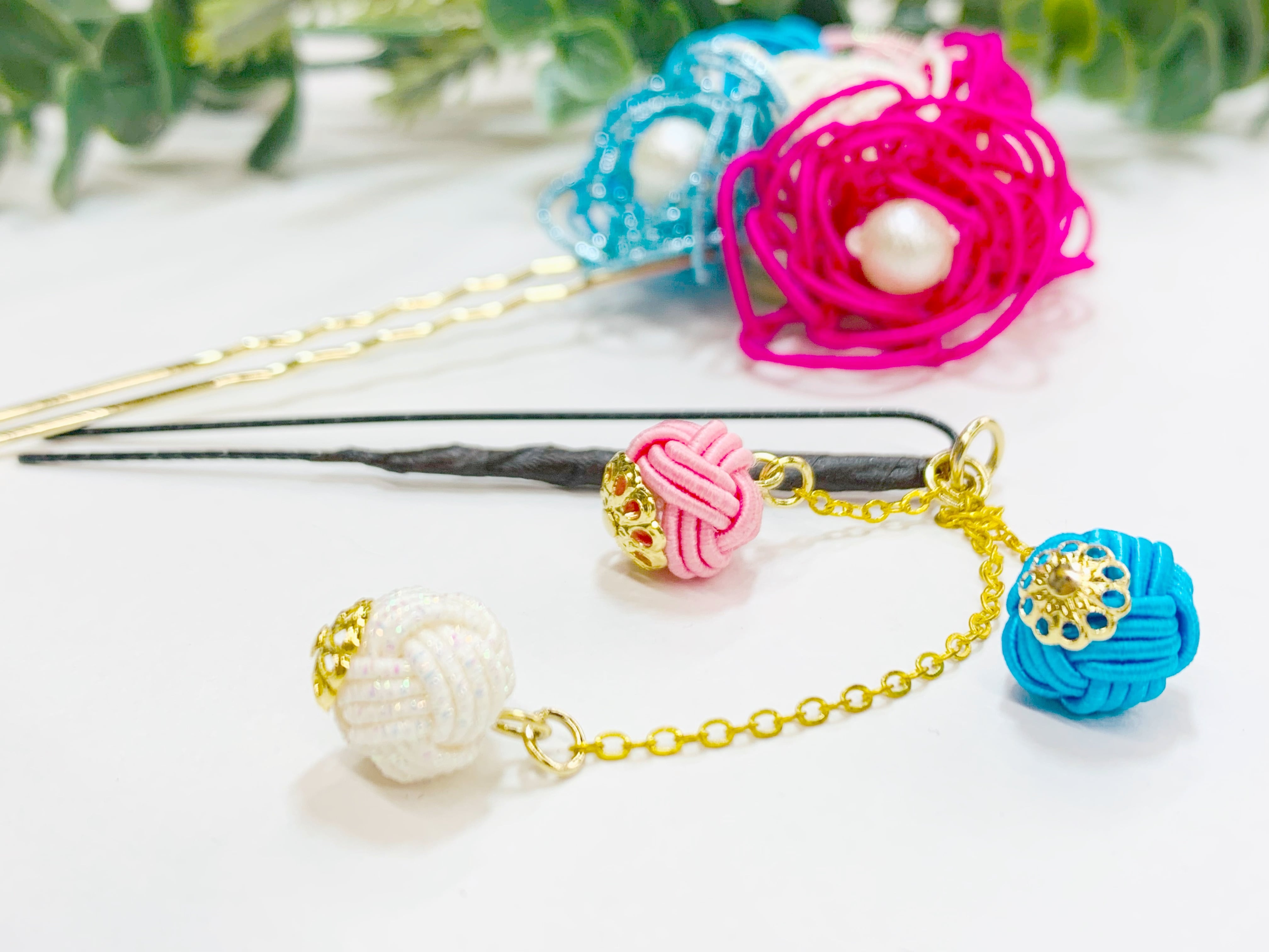 水引をふんだんに使用した簪のセットです